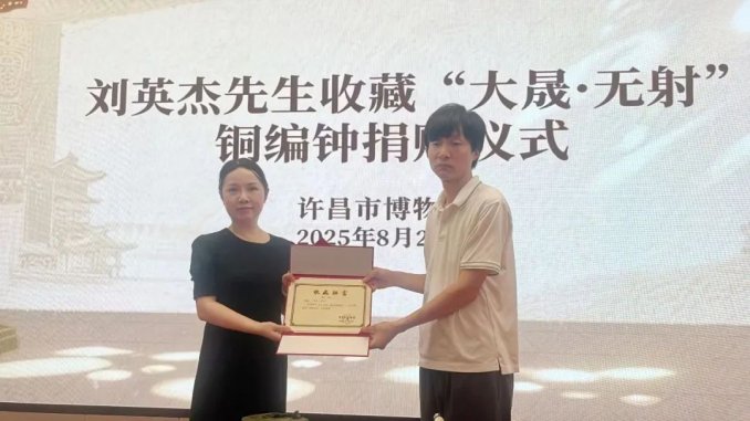 8月20日,许昌市博物馆获赠一件意义非凡的珍贵文物——北宋“大晟·无射”铜编钟,捐赠者为文物收藏爱好者刘英杰先生。...