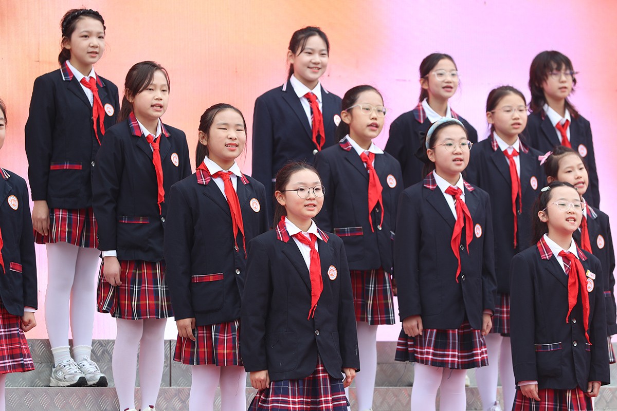庆典在歌伴舞《领航》中拉开帷幕,师生们以灵动舞姿展现华洋紧跟教育强国步伐的昂扬姿态;诗朗诵《致敬华洋:蝶变出彩》深情回顾学校从2010年“破土萌芽”到如今“桃李芬芳”的奋斗历程,再现华洋人敢闯敢拼的精神底色;小学部合唱团唱响校歌《华洋华洋》,稚嫩而坚定的歌声凝聚着全体华洋人的梦想与信念,将现场气氛推向第一个高潮。